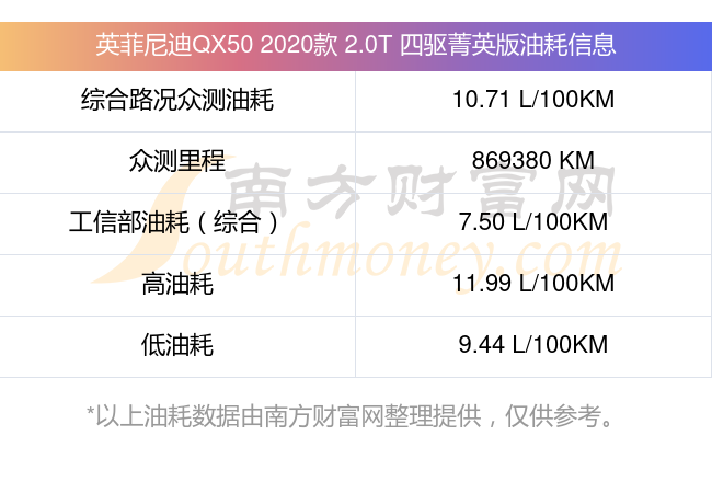 【英菲尼迪QX50 2020款 2.0T 四驱菁英版油耗】百公里油耗怎么样(7月22日)