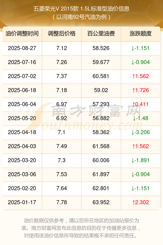 五菱荣光V 2015款 1.5L标准型百公里油耗_真实油耗是多少10月12日92、95号汽油价格查询