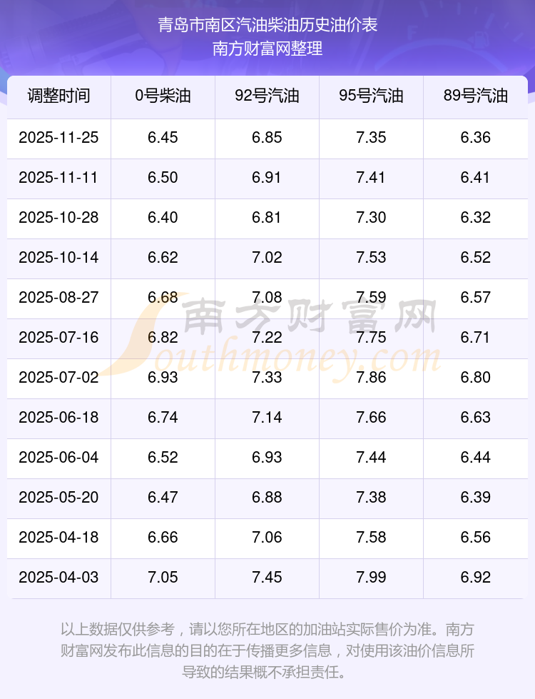 青岛市南区历史油价表