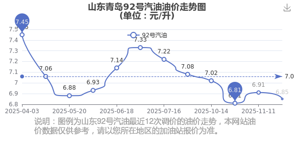 山东青岛2025年汽油价格调整走势图