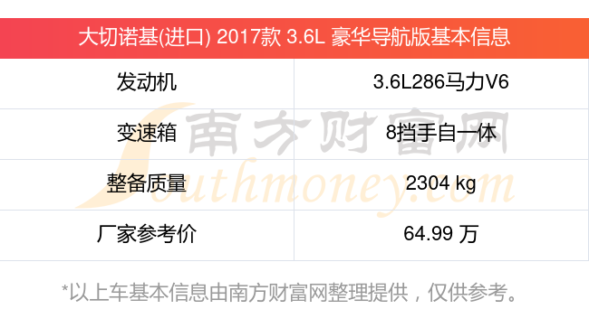 大切诺基(进口) 2017款 3.6L 豪华导航版动力方面,搭载的是一台3.6L286马力V6自然吸气发动机,匹配8挡手自一体自动档变速箱,燃料形式为汽油,常规整备质量2304kg,厂家参考价64.99万元。