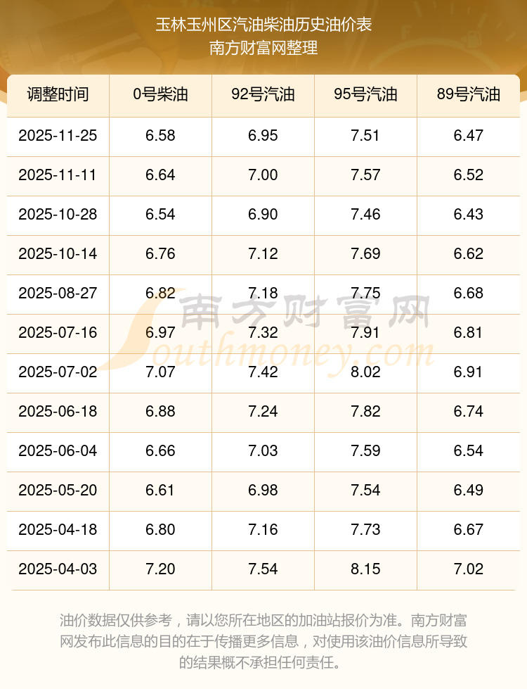玉林玉州区历史油价表