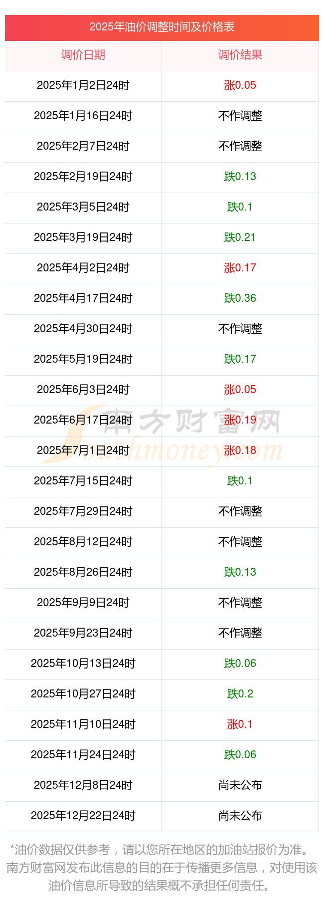 油价调整最新消息:下一轮油价调整时间12月8日24时。莲湖区汽油、柴油12月4日的价格是多少钱一升?具体如下:92号汽油为6.78元,下调了0.05元;95号汽油为7.16元,下调了0.06元;89号汽油为6.39元,下调了0.06元;0号柴油为6.43元,下调了0.05元,本轮油价的调整时间为11月25日。