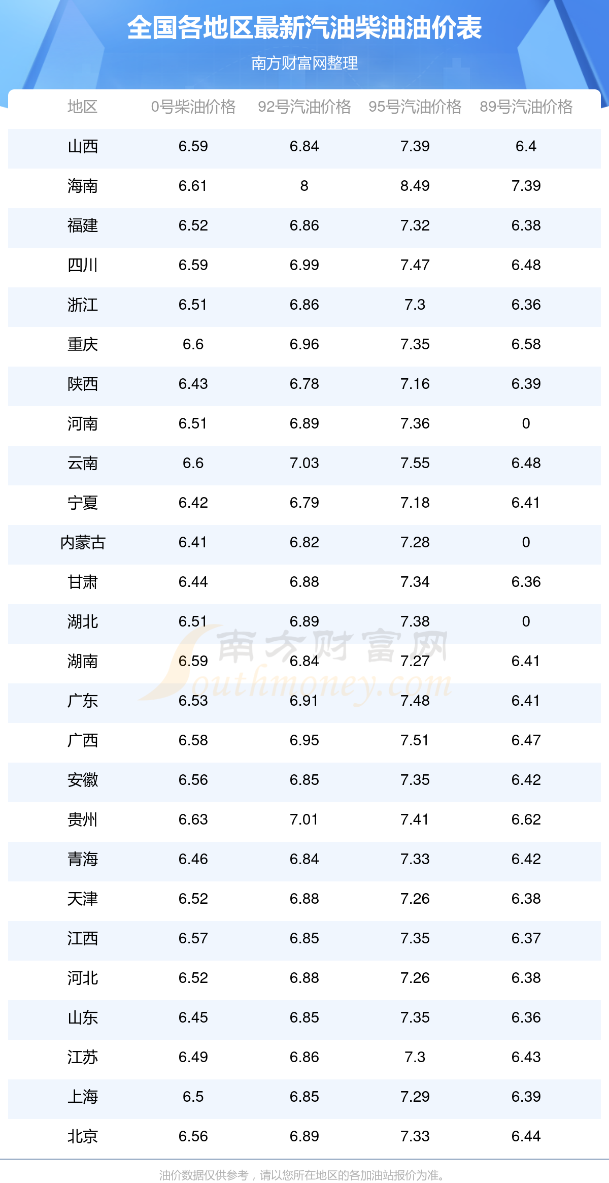 2025年12月4日全国油价调整及最新汽油价格表