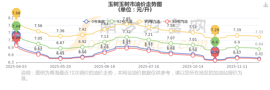 玉树玉树市12月4日92号汽油历史油价调整走势图