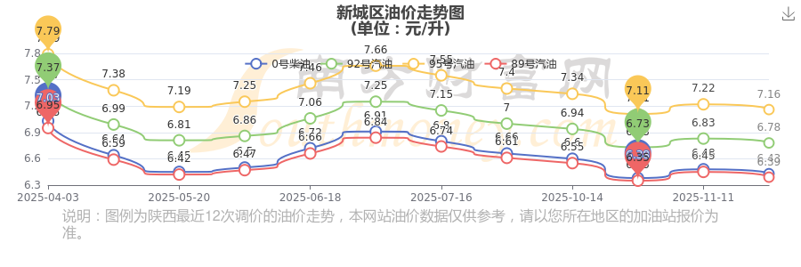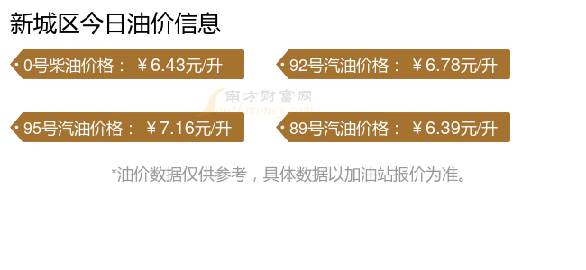 新城区汽油、柴油12月4日价格多少钱一升?具体为:0号柴油为6.43元,减了0.05元;95号汽油为7.16元;92号汽油为6.78元;89号汽油为6.39元,调整时间为11月25日。