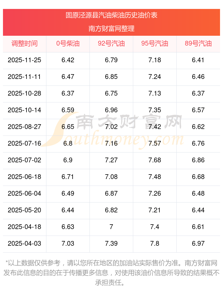 本站提供的油价数据仅供参考,具体数据以加油站报价为准。