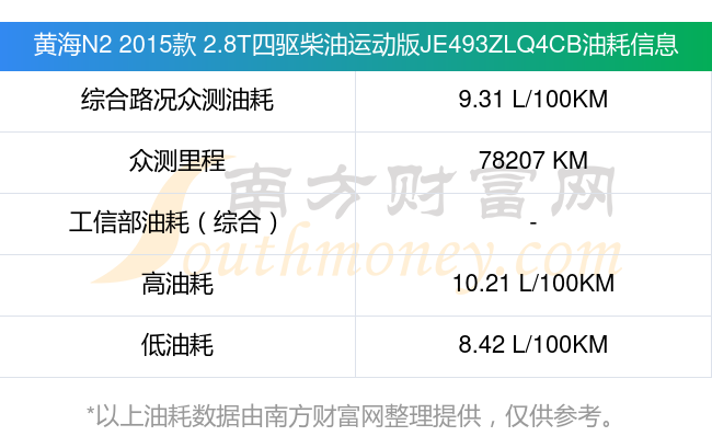 根据车主实测数据,该车型低油耗为8.42L/100km,高油耗为10.21L/100km,综合路况众测油耗为9.31L/100km,工信部综合油耗为-L/100km。
