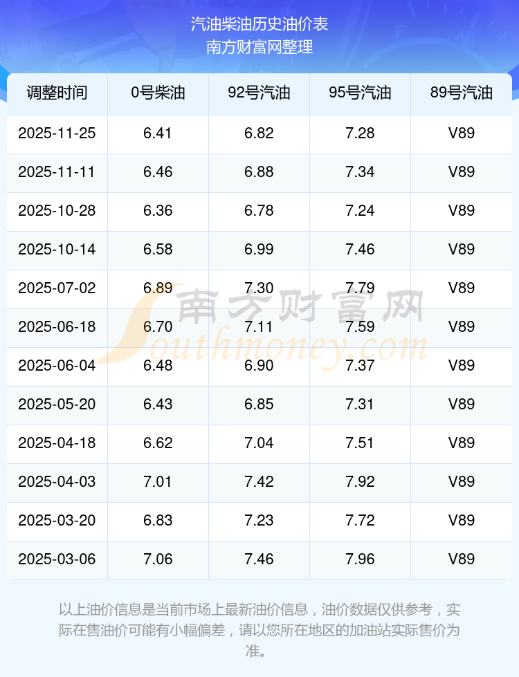 2025年92号汽油价格一览表