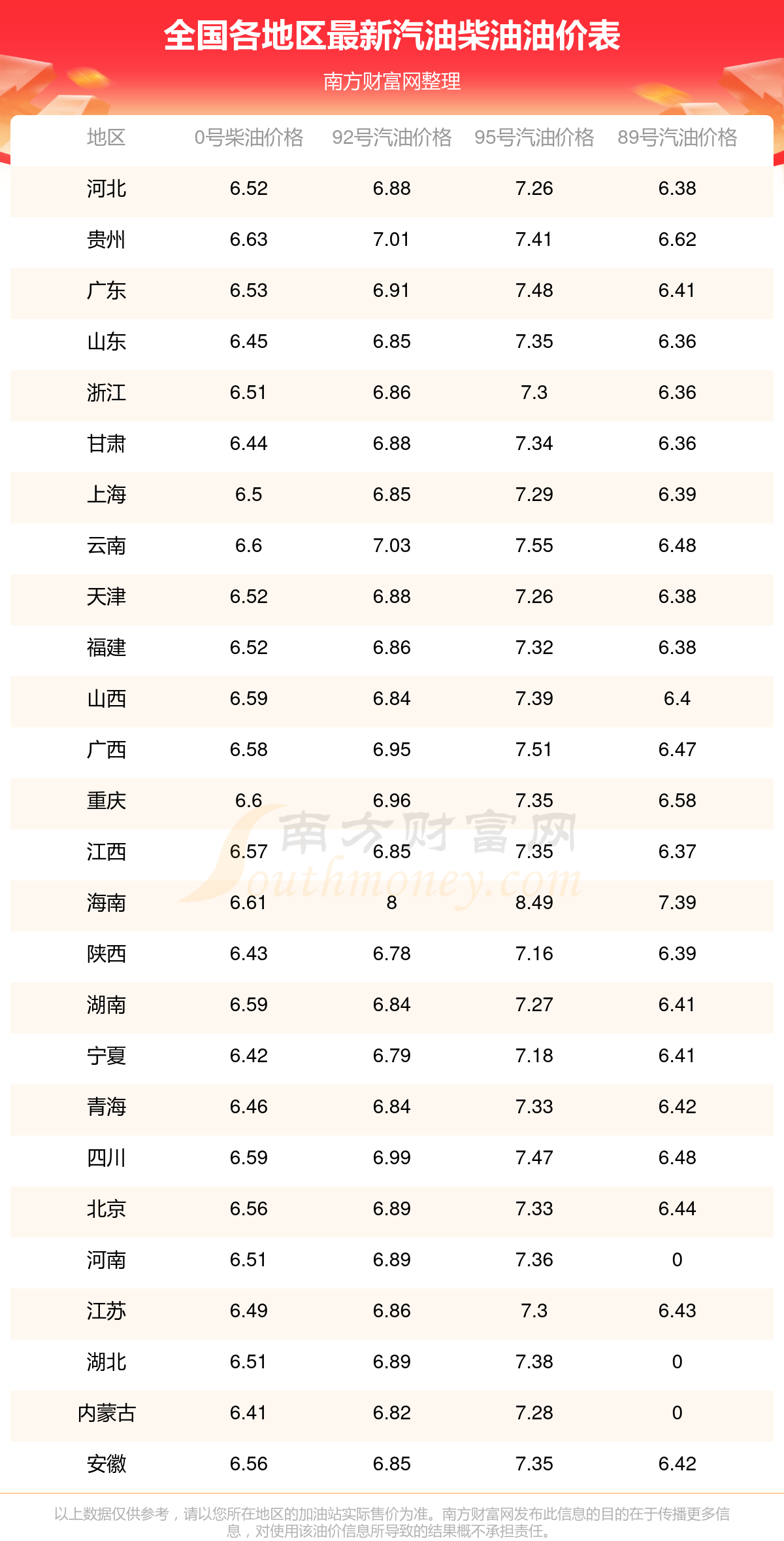 本轮油价的调整时间为11月25日,调整后全国92号汽油平均价格为7元每升,其中,最低为陕西的6.78元/升,最高为海南的8.00元/升。全国95号汽油平均价格为7元每升,其中,最低为陕西的7.16元/升,最高为海南的8.49元/升。全国0号柴油平均价格为:7元每升,其中,最低为内蒙古的6.41元/升,最高为贵州的6.63元/升。全国89号汽油平均价格为6元每升,其中,最低为浙江的6.36元/升,最高为海南的7.39元/升。,下一轮油价调整时间12月8日24时,距离现在还有4.32天。