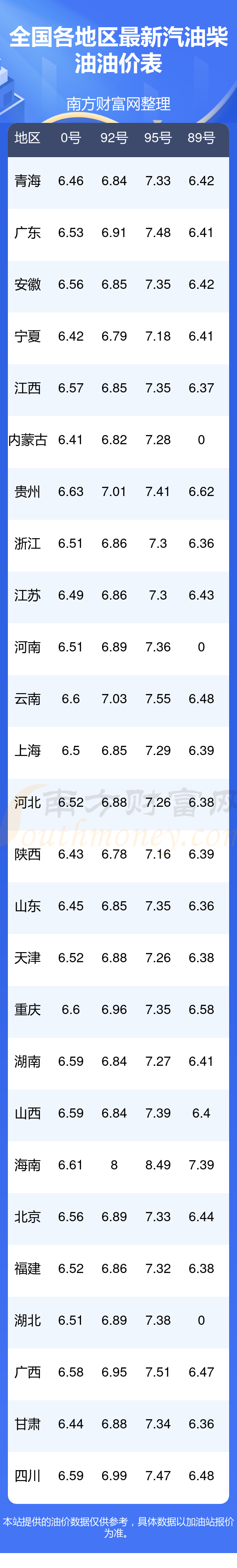 2025年12月4日全国油价调整及最新汽油价格表