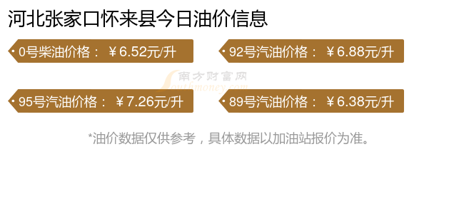 油价调整最新消息:河北张家口??来县12月4日汽油价格一览:92号汽油6.88元;95号汽油7.26元;89号汽油6.38元;0号柴油6.52元(该价格为11月25日调整后的价格)。下一轮油价调整时间12月8日24时。