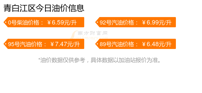 青白江区汽油、柴油12月4日每升的价格为(本轮油价调整时间为11月25日):92号汽油6.99元;95号汽油7.47元;89号汽油6.48元;0号柴油6.59元。