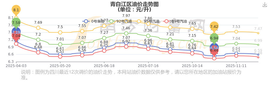 青白江区12月4日95号汽油历史油价调整走势图
