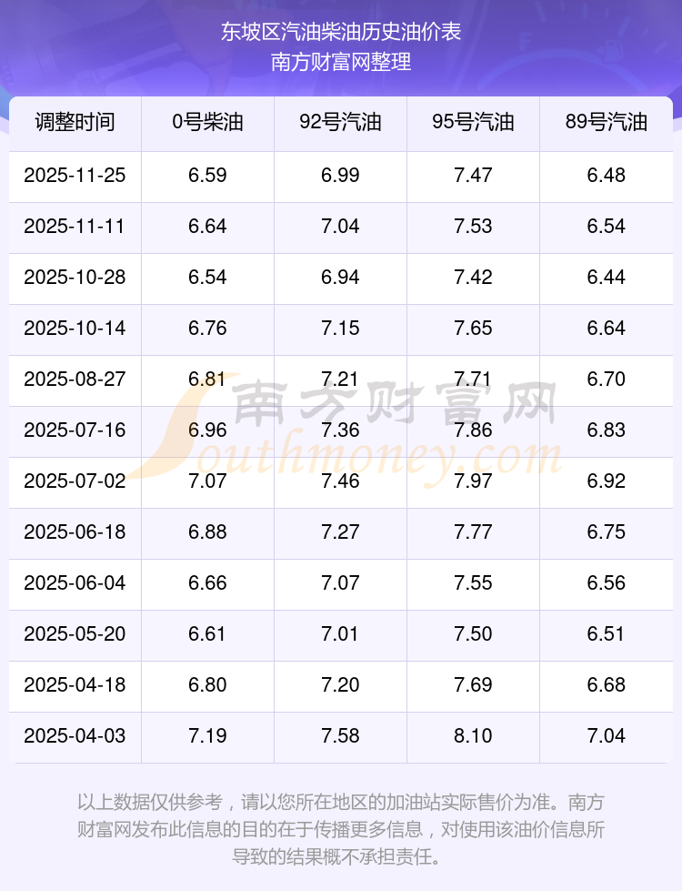 东坡区历史油价表