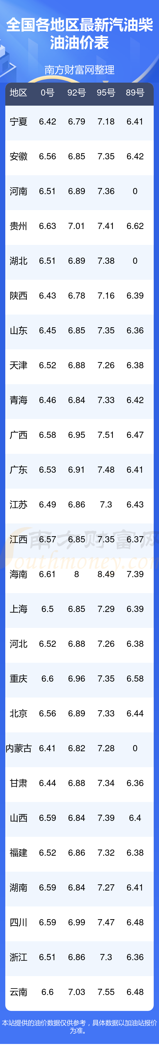 油价调整最新消息:邕宁区汽油、柴油12月4日每升最新价格为:95号汽油为7.51元,下跌了0.06元;92号汽油为6.95元,下跌了0.05元;89号汽油为6.47元,下跌了0.05元;0号柴油为6.58元,下跌了0.06元,调整时间为11月25日。下一轮油价调整时间12月8日24时。