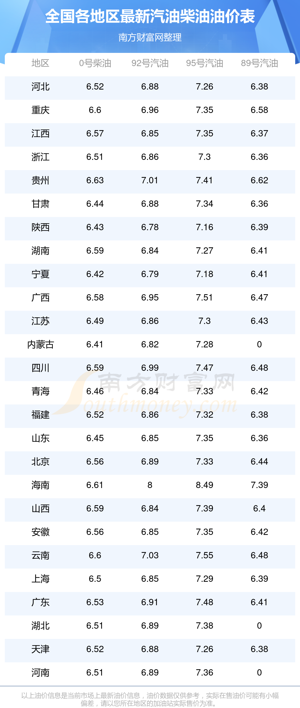 油价数据仅供参考,请以您所在地区的各加油站报价为准。