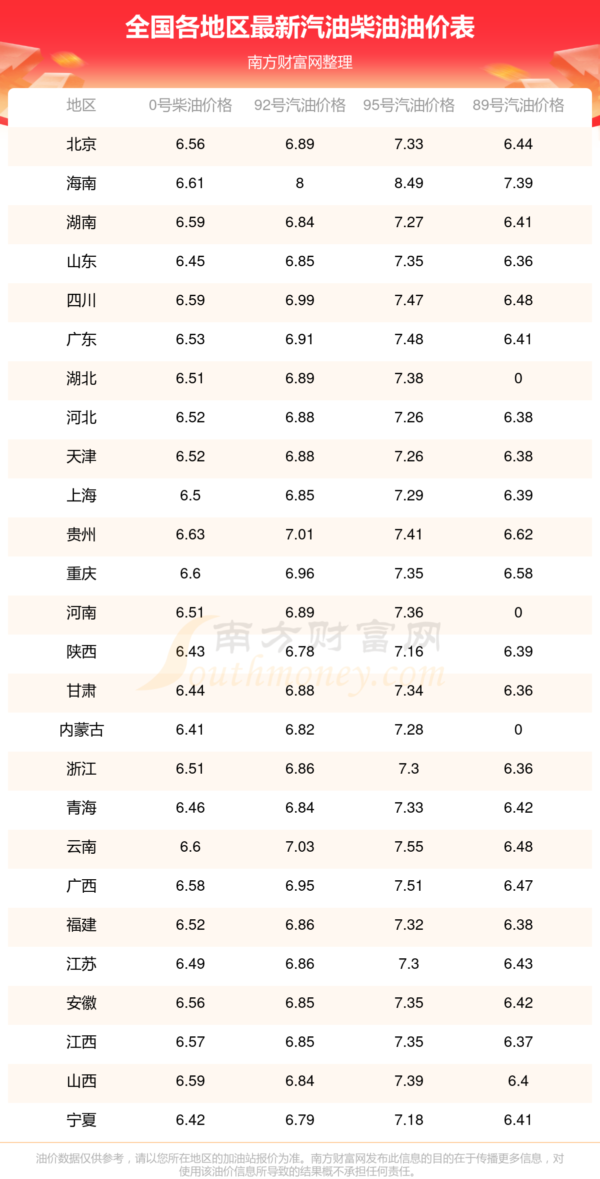 全国95号汽油最新平均价格为:7元每升,其中,最高为海南,价格为8.49元/升,最低为陕西,价格为7.16元/升。