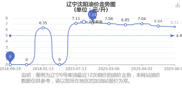 2025年辽宁沈阳最新油价调整走势图
