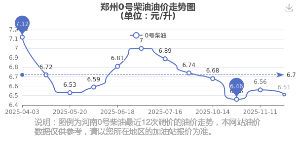郑州汽油、柴油12月4日每升的价格是多少?具体为:92号汽油为6.89元,降了0.06元;95号汽油为7.36元,降了0.06元;0号柴油为6.51元,降了0.05元,本轮油价的调整时间为11月25日。郑州下一轮油价调整时间12月8日24时,距离现在还有4.25天。