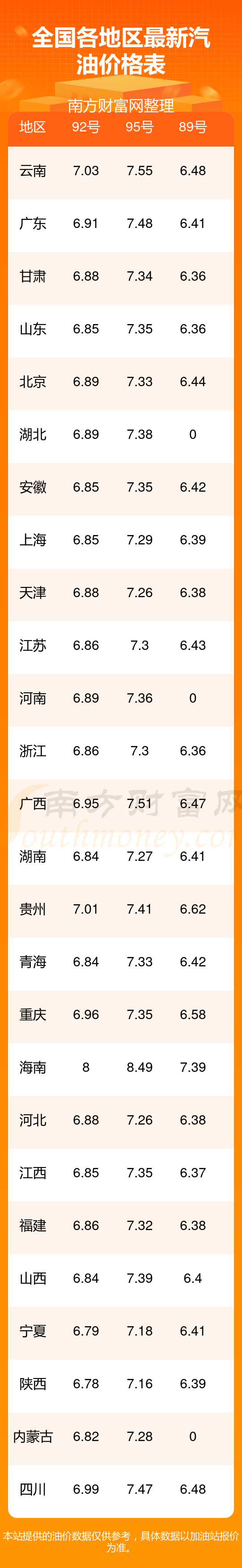 (12月4日)全国油价一览表