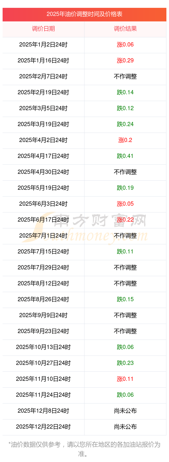 杭州建德市12月4日油价调整时间及价格表