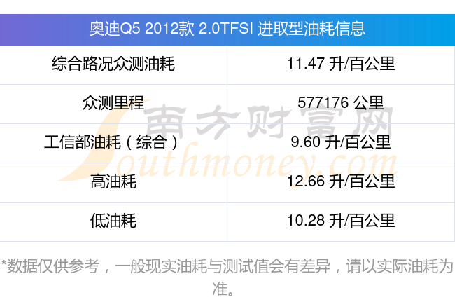 根据车主实测数据,该车型低油耗为10.28升/百公里,高油耗为12.66升/百公里,综合路况众测油耗为11.47升/百公里,工信部综合油耗为9.60升/百公里。