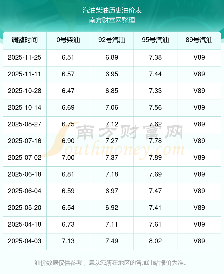 12月4日宜昌92号汽油的最新价格:宜昌92号汽油6.89元/升(根据11月25日调整后的价格),相对上次调整时间11月11日的油价6.95元每升,下跌了0.06元,下跌0.863%。下一轮油价调整时间12月8日24时,距离现在还有4.17天。