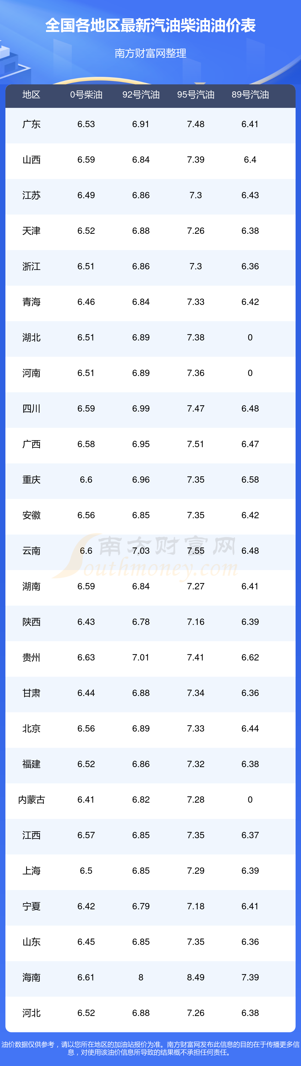 以上油价信息是当前市场上最新油价信息,油价数据仅供参考,实际在售油价可能有小幅偏差,请以您所在地区的加油站实际售价为准。