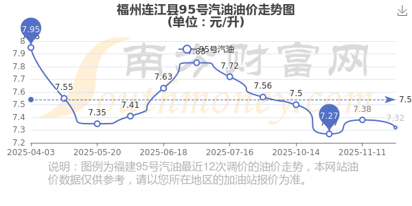 福州连江县95号汽油历史油价走势图