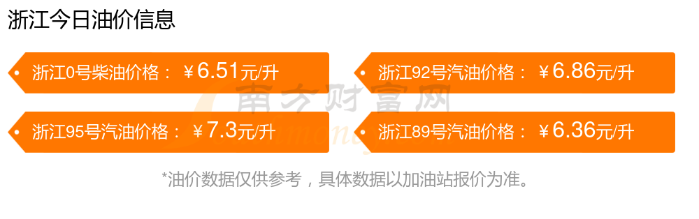 12月4日,浙江汽油、柴油的价格为11月25日调整后的价格。具体为:92号汽油6.86元,减了0.06元;95号汽油7.3元,减了0.06元;89号汽油6.36元,减了0.05;0号柴油6.51元,减了0.06元。