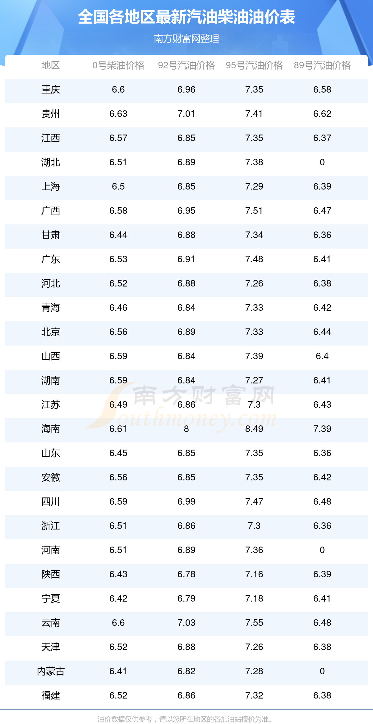 (12月4日)全国油价一览表