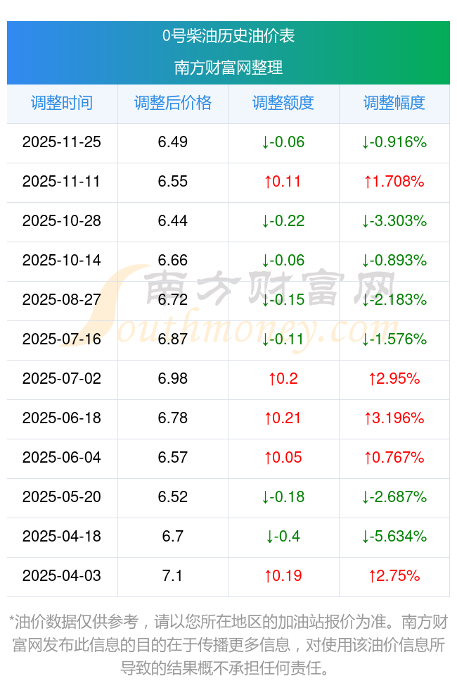 以上数据仅供参考,请以您所在地区的加油站实际售价为准。南方财富网发布此信息的目的在于传播更多信息,对使用该油价信息所导致的结果概不承担责任。