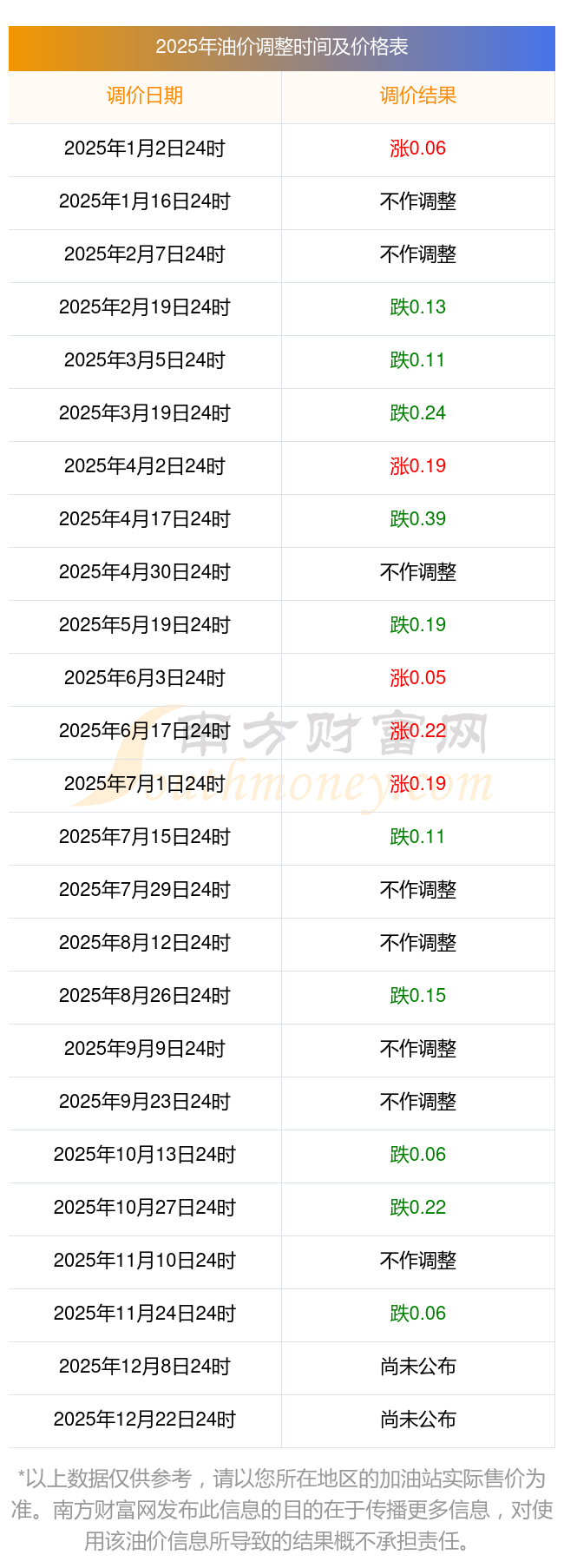 贵州汽油、柴油12月4日每升最新价格为11月25日调整后的价格,92号汽油为7.01元,下跌了0.06元;95号汽油为7.41元,下跌了0.06元;89号汽油为6.62元,下跌了0.05;0号柴油为6.63元,下跌了0.06元。下一轮油价调整时间12月8日24时,距离现在还有4.08天。