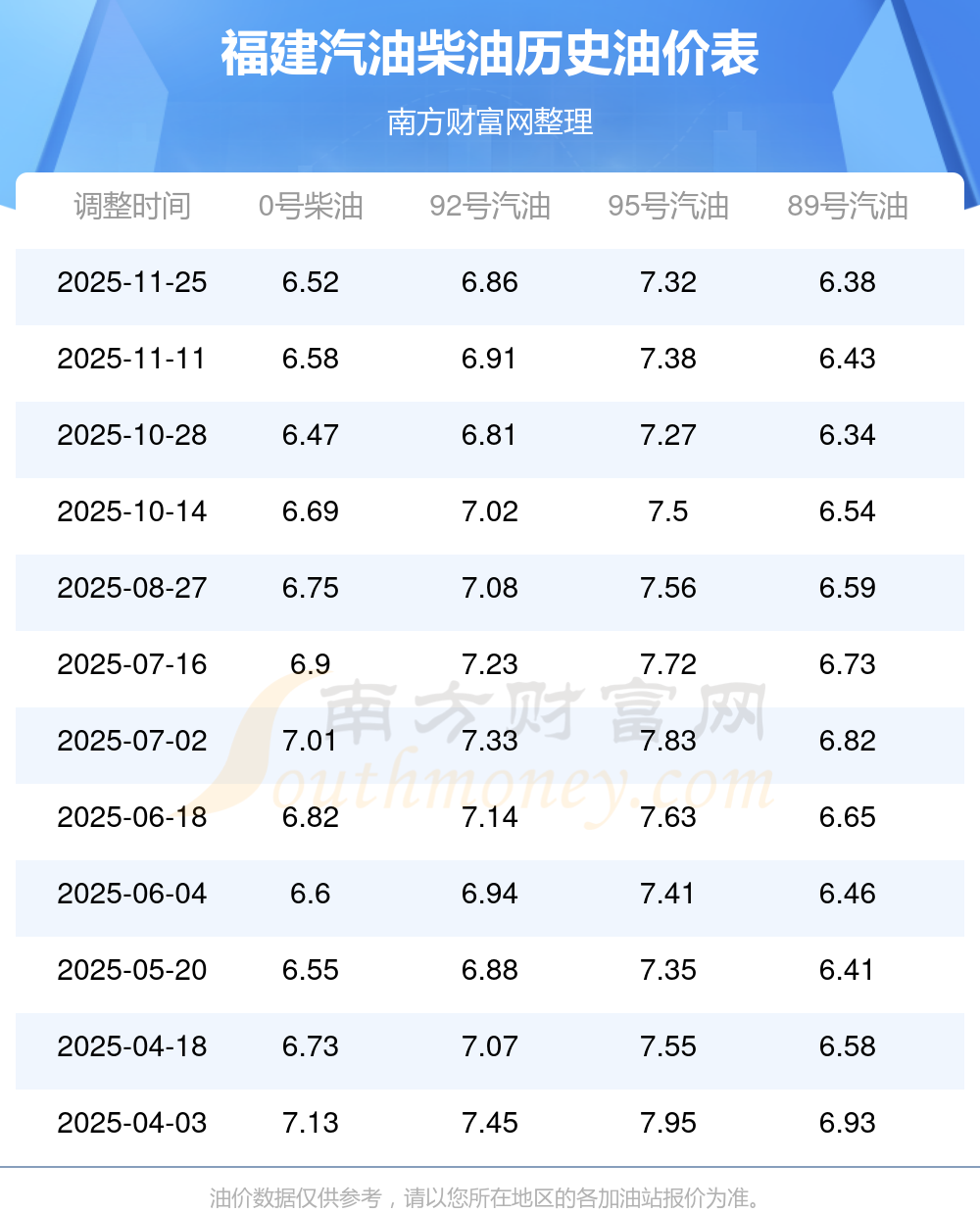 福建0号柴油油价调整表