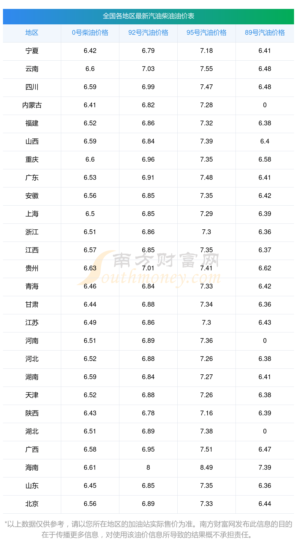 以上油价信息是当前市场上最新油价信息,油价数据仅供参考,实际在售油价可能有小幅偏差,请以您所在地区的加油站实际售价为准。