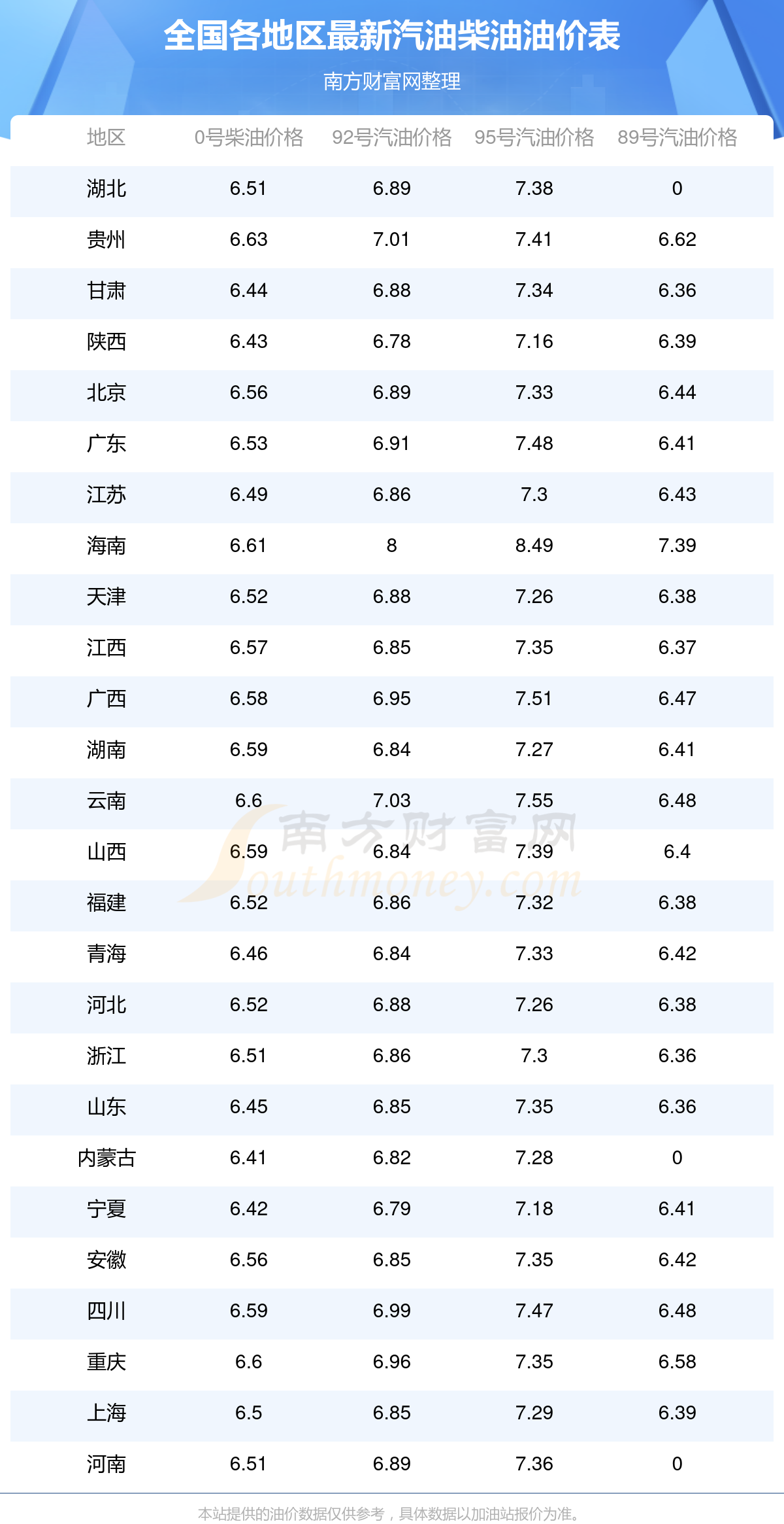 2025年12月5日全国油价调整及最新汽油价格表