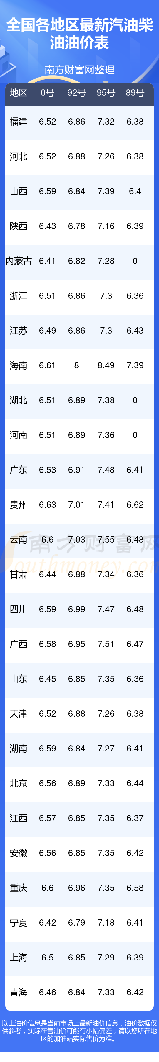 油价数据仅供参考,请以您所在地区的各加油站报价为准。