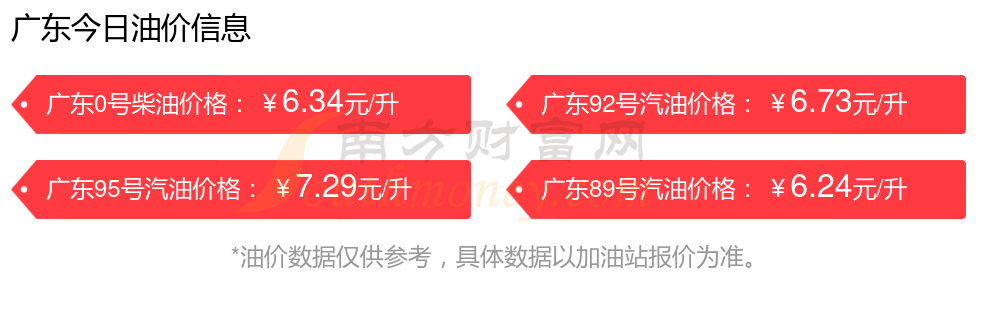 广东95号汽油油价调整表