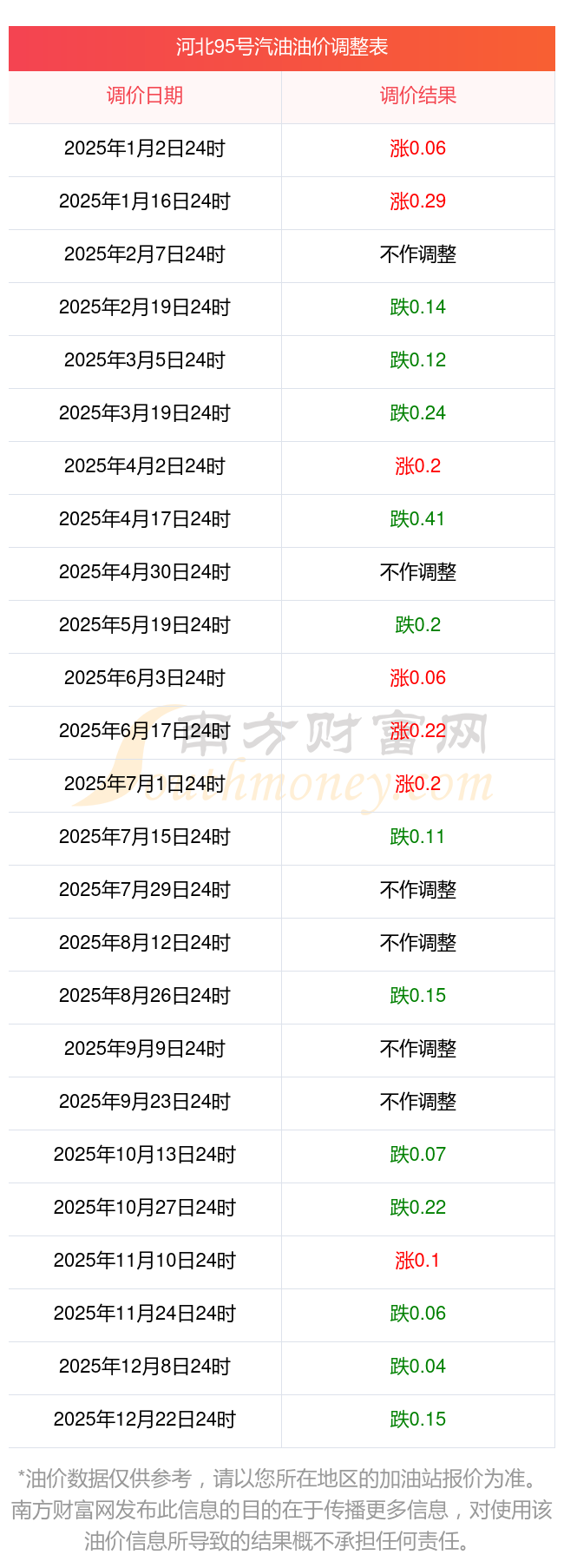 河北石家庄汽油、柴油12月29日每升的价格具体是(12月23日调整后的价格):92号汽油6.69元;95号汽油7.07元;89号汽油6.21元;0号柴油6.33元。