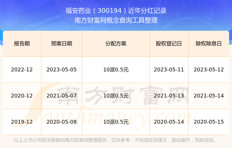 福安药业最新一次公布的分红方案:10派0.5元。