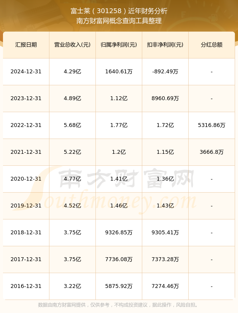 富士莱公司2024年实现营收4.29亿元,净利润1640.61万元,毛利率19.63%。